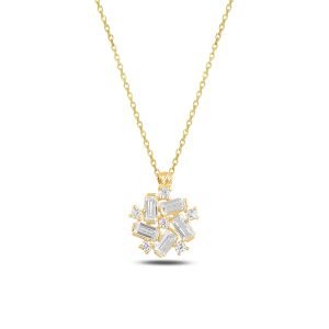 14 Ayar Altın Taşlı Oval Plaka Kolye